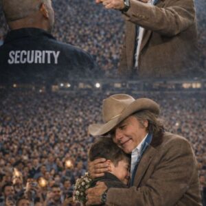 Introduction When Dwight Yoakam Stopped the Show, an Arena Full of Noise Became a Cathedral of Feeling There are performances people remember for the sound, for the lights, for the sheer force of a star commanding a stage. And then there are the rarer moments — the ones that slip beyond entertainment and become something more intimate, more human, more unforgettable. That is the emotional power at the heart of “Dwight Yoakam Cut the Music — And 40,000 Fans Watched a Concert Turn Into Something Sacred.” What makes this scene so compelling is not simply that Dwight Yoakam stopped singing. Great performers pause all the time. What matters here is why he stopped. In the middle of a roaring arena, with the crowd fully in his hands and the energy of the night still climbing, he noticed something most people would have missed. Near the barricade, amid all the motion and noise, security was pulling away a small boy holding a few wilted wildflowers like they were the most precious gift in the world. That image alone says everything: innocence against machinery, tenderness against momentum, one fragile child against the unstoppable rhythm of a major concert. And Dwight saw it. That is the detail that gives this moment its weight. It reminds us that true artists do more than perform songs — they read the emotional temperature of a room. They sense when something deeper is happening. Yoakam, long admired for his sharp style, unmistakable voice, and commanding stage presence, has always known how to hold an audience. But in this moment, he revealed something even more powerful than stagecraft: attention. Compassion. Instinct. He did not wait for an explanation. He did not hide behind the distance that usually exists between celebrity and crowd. He stepped back, stopped the band, and chose humanity over spectacle. For older listeners especially, that kind of moment carries a special resonance. It calls back to a time when performers often seemed less polished, perhaps, but more reachable — when a concert could still feel like a shared emotional event rather than a perfectly programmed production. The silence that followed must have been astonishing. Forty thousand people, only seconds earlier full of motion and song, suddenly drawn into one suspended breath. In that silence, the night changed. It was no longer just about Dwight Yoakam the star. It became about Dwight Yoakam the man. And that is why this scene lingers in the mind. A child with flowers. A singer who noticed. A packed arena brought to stillness. The setup feels almost cinematic, but its emotional force comes from its simplicity. One gesture can alter the meaning of an entire evening. One decision can remind thousands of people that kindness still has the power to interrupt the noise. That is what makes this not just a concert story, but a meaningful one. It suggests that sometimes the most memorable part of a performance is not the biggest note or the loudest applause, but the moment when music stops — and character begins to speak.