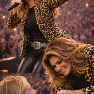 Introduction When Shania Twain Left the Microphone Behind, One Fan Received a Memory More Powerful Than the Music There are nights in music when the songs are unforgettable, the crowd is electric, and the atmosphere feels almost suspended outside of time. Then there are rarer nights when something even more lasting happens — a moment so human, so unguarded, that it lingers in memory long after the final note fades. That is the emotional heart of “Shania Twain Stepped Away From the Spotlight — And One Fan Received the Moment of a Lifetime.” It is not simply a touching concert anecdote. It is a reminder that the deepest power of live performance is not always found in the song itself, but in the connection that can suddenly bloom around it. Few artists carry the emotional history Shania Twain does. For millions of listeners, she has long represented more than success, glamour, or stage command. She has stood for resilience. Her songs have accompanied love stories, heartbreaks, reinventions, and the long, quiet work of becoming oneself again after life changes shape. That is why an evening in her presence already feels meaningful to so many fans before a single surprise ever occurs. They do not just arrive to hear familiar hits. They arrive carrying pieces of their own past, knowing her voice has lived beside them through seasons they will never forget. That context gives “Shania Twain Stepped Away From the Spotlight — And One Fan Received the Moment of a Lifetime” its special weight. The arena is already glowing with energy and memory. Thousands of people are wrapped in the shared emotion that only beloved songs can create. Then, near the front row, Shania notices a longtime fan holding a handmade sign, trembling under the force of the moment. That image says everything. A handmade sign is not casual. It is personal, hopeful, and often born from years of devotion. The fan is not simply attending a concert. She is bringing her gratitude into the room, praying perhaps for one glance, one acknowledgment, one second of being seen. Most performers could have smiled from afar and kept the show moving. No one would have blamed them. The stage is bright, the schedule is fixed, and the distance between artist and audience is part of the structure of such nights. But Shania does something far more meaningful. She steps away from the microphone. She walks to the edge of the stage. In that gesture alone, the emotional center of the evening changes. The spotlight no longer belongs to performance. It belongs to presence. What makes the moment so moving is its simplicity. She reaches down not as an icon protecting an image, but as a woman responding to another human being. For a few brief seconds, music becomes secondary. The audience witnesses something quieter and, in many ways, more powerful than the show they came to see. They watch a fan realize that the artist whose songs shaped part of her life is now looking directly at her. That kind of recognition can overwhelm a person because it collapses years of admiration into one living instant. For older listeners especially, this moment resonates because it reflects a truth life teaches over time: the things we remember most are often not the grand productions, but the moments of kindness that arrive unexpectedly. A song may bring people into the room, but warmth is what makes them feel they belonged there. Shania Twain has always carried a certain radiance, but scenes like this reveal the grace beneath it — the part that cannot be choreographed, only offered. That is why “Shania Twain Stepped Away From the Spotlight — And One Fan Received the Moment of a Lifetime” feels larger than a simple fan interaction. It becomes a portrait of what live music can still do at its best. It can turn thousands into silence. It can make a giant arena feel intimate. It can remind everyone watching that beyond fame, beyond image, beyond the machinery of performance, there remains something unmistakably human. And in the end, that may be what the fan carried home more than anything else: not just the memory of seeing Shania Twain, but the feeling of being seen by her.