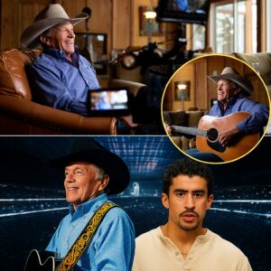 “Now, I ain’t saying I could out-dance Bad Bunny… but I sure could out-sing him.” – When social media exploded with demands for George Strait to take Bad Bunny’s place at this year’s Super Bowl halftime show, most expected the King of Country to stay silent. But late last night, the 72-year-old legend broke his silence — and the internet hasn’t stopped buzzing since. In a casual video filmed from his Texas ranch, George appeared in a denim shirt and cowboy hat, leaning back in his chair with a grin. “I’ve been hearing y’all loud and clear,” he joked, tipping his hat toward the camera. “Now, I ain’t saying I could out-dance Bad Bunny… but I sure could out-sing him.” The comment alone sent fans into a frenzy — but what came next turned the lighthearted moment into something unforgettable. George smiled again, adjusted his guitar strap, and said, “Since you’re asking me to bring country to the Super Bowl… maybe I’ll start right here at home.” Then, without warning, he strummed the opening chords of a brand-new song no one had ever heard before — a tender, storytelling ballad titled “Heartland Sunday”. The song, written during his quiet months off-tour, spoke of faith, small towns, and “a nation that still sings together when the lights go down.”.. WATCH VIDEO BELOW 👇👇