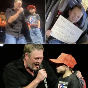No one in the packed arena could have guessed what was about to unfold when Blake Shelton abruptly stopped singing mid-verse and turned to the crowd. Then, with a voice full of tenderness, he called forward a six-year-old child awaiting a heart transplant — a little warrior whose story had already touched everyone in the town. Gasps filled the room as the youngster stepped nervously into the spotlight, clutching the microphone with trembling hands. Blake knelt beside him, whispered something only they could hear, and together they began a duet that silenced thousands. What followed was a sound so pure and fragile that audience members wept openly, describing it later as the kind of moment that changes how you see life, love, and the power of music forever… WATCH VIDEO BELOW 👇👇