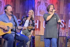 Shelton explained that he and Stefani are aware of Kingston’s musical ambitions, and while he has been writing “incredible music,” he hadn’t yet performed in a live setting. The couple figured the Tishomingo bar would be a good under-the-radar spot for a first performance, but social media had other plans.
