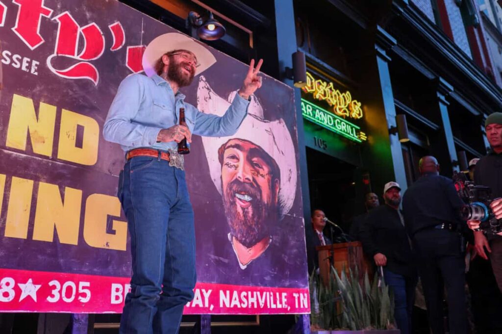 Nashville’s Lower Broadway turned into one massive street party when Post Malone officially opened the doors to Posty’s Bar — and in true Posty fashion, he did it big. The superstar drew a crowd of more than 30,000 fans, closed down Broadway for the night, and threw a free concert featuring surprise appearances from Lainey Wilson, Dierks Bentley, and Brooks & Dunn, complete with free food and drinks for everyone.