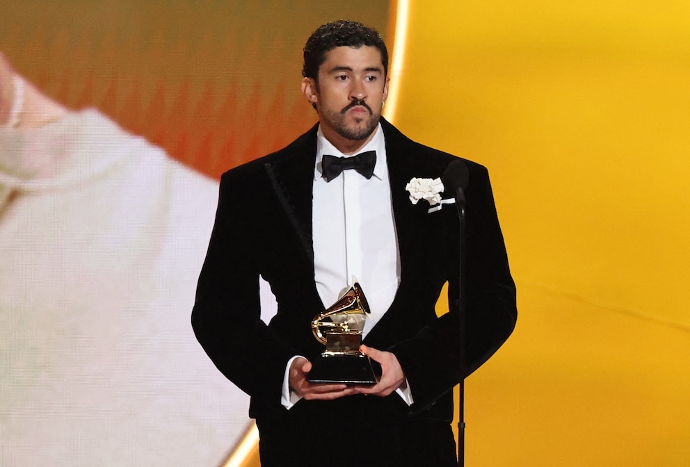 During his album of the year acceptance speech in Spanish, Bad Bunny dedicated the award “to all the people that had to leave their homeland, their country, to follow their dreams.”