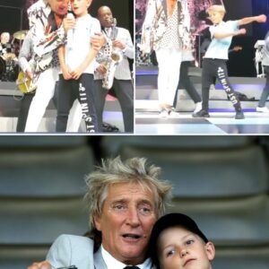 As the lights dimmed and the crowd erupted into cheers, Rod Stewart took the stage with his signature charm. But the night’s highlight came when his 7-year-old son, Aiden, confidently joined him, teaching the legendary rocker how to floss dance. The audience roared with laughter and delight as Rod gamely mimicked Aiden’s swift, coordinated moves, his iconic raspy voice replaced by a playful chuckle. The connection between father and son was heartwarming, and the moment radiated joy, leaving fans grinning from ear to ear. By the end, the crowd was on their feet, clapping in rhythm and celebrating the timeless, multigenerational magic of the performance.